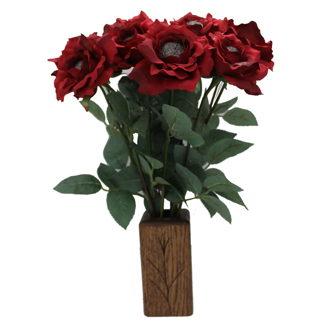 The traditional anniversary gift for the 11th Wedding Anniversary is an anniversary gift made from steel! Yes, our steel roses are balls of steel wool glued into the center of our finest artificial rose. What could be better on your eleven year anniversary than a gift of steel wool ?