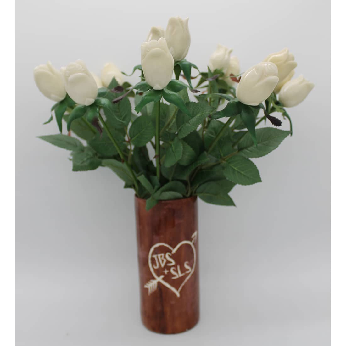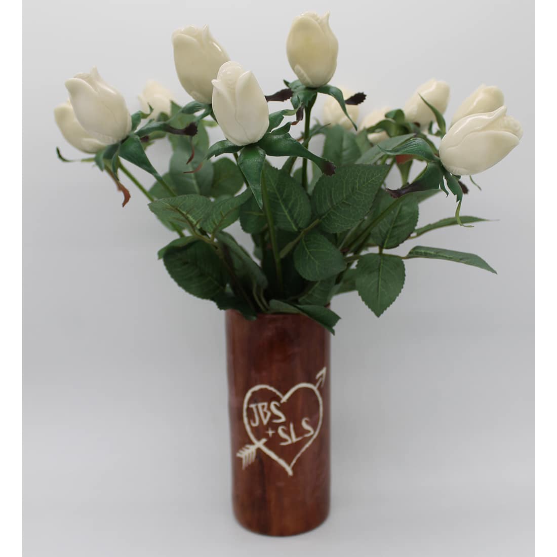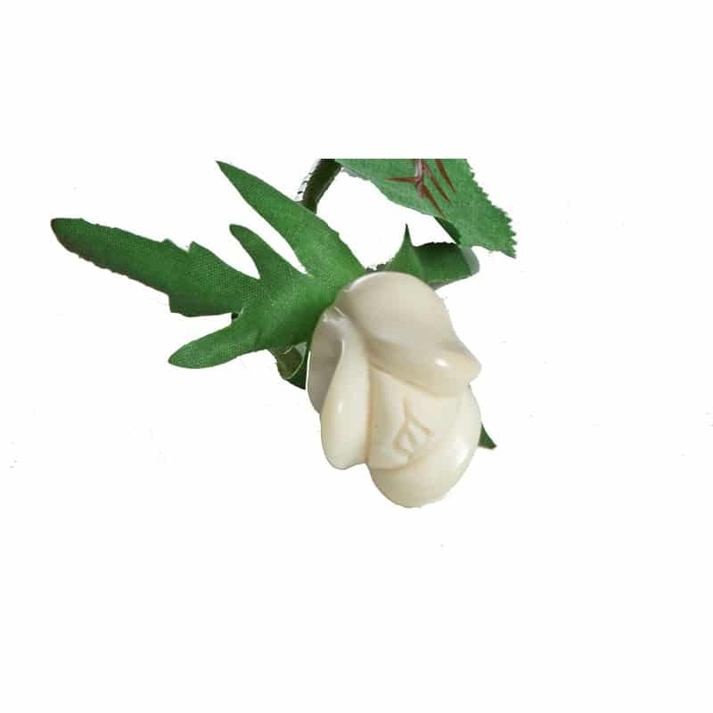 The traditional 14th anniversary gifts are presents made from ivory! Our most unusual creation, JustTaguaNutRoses are fake ivory roses, so no elephants killed! A tagua nut is a coconut-like fruit that is dried in the sun until hardened and then carved into beautiful roses just for us in Ecuador and then we put them on a beautiful 17” floral stem.