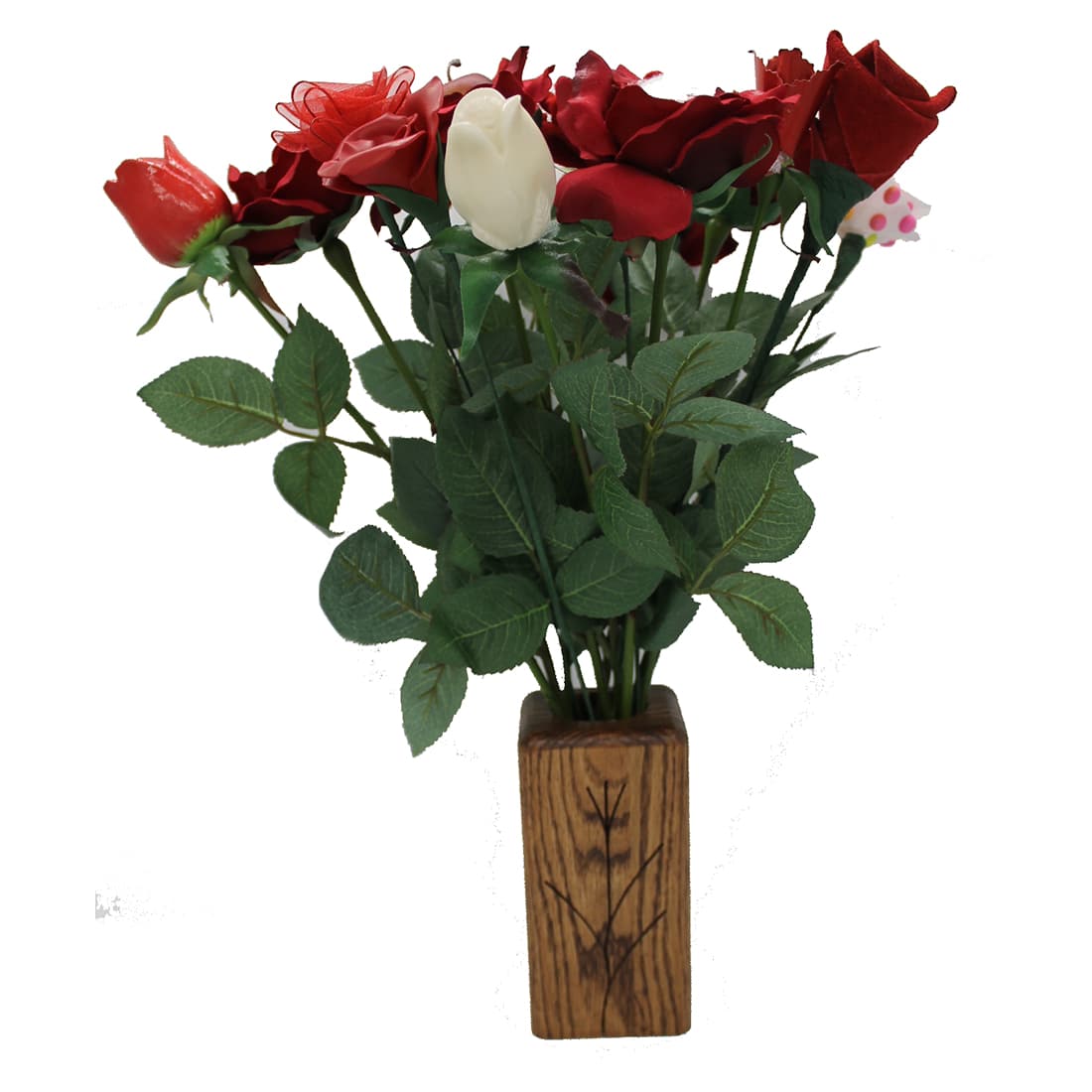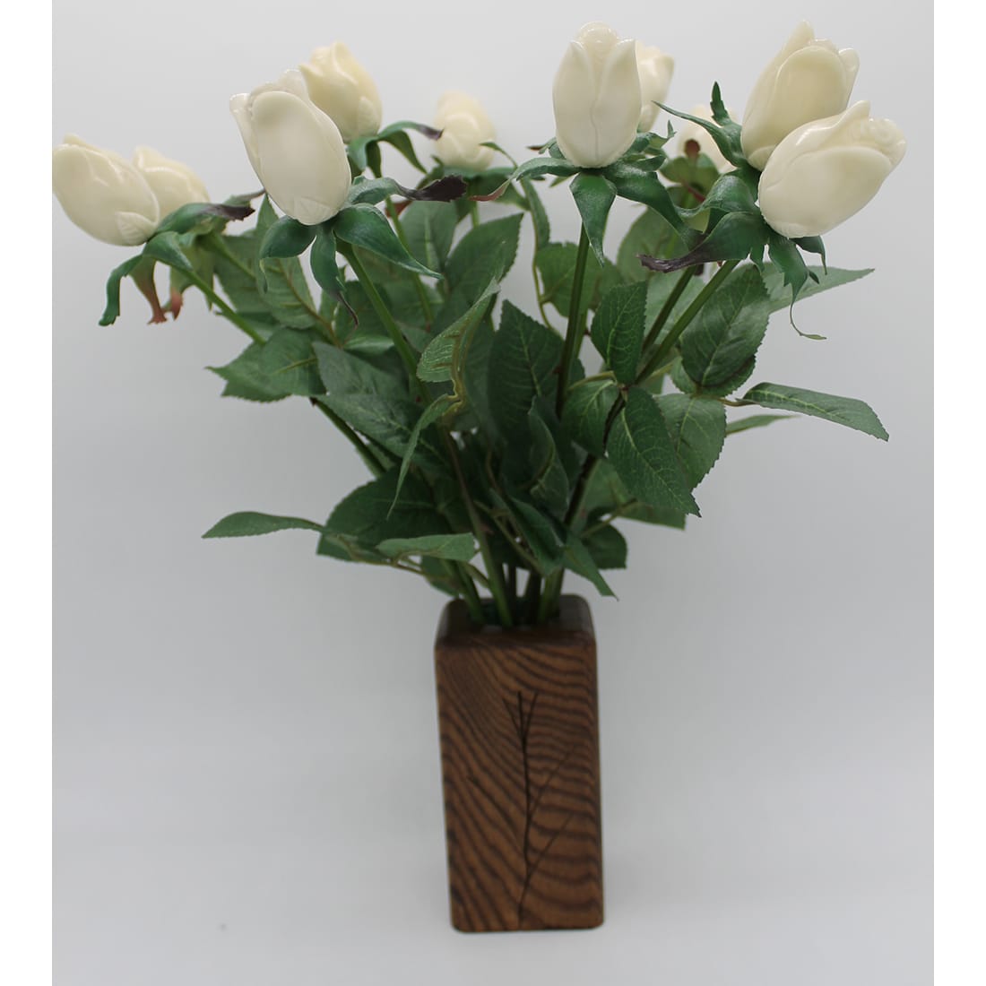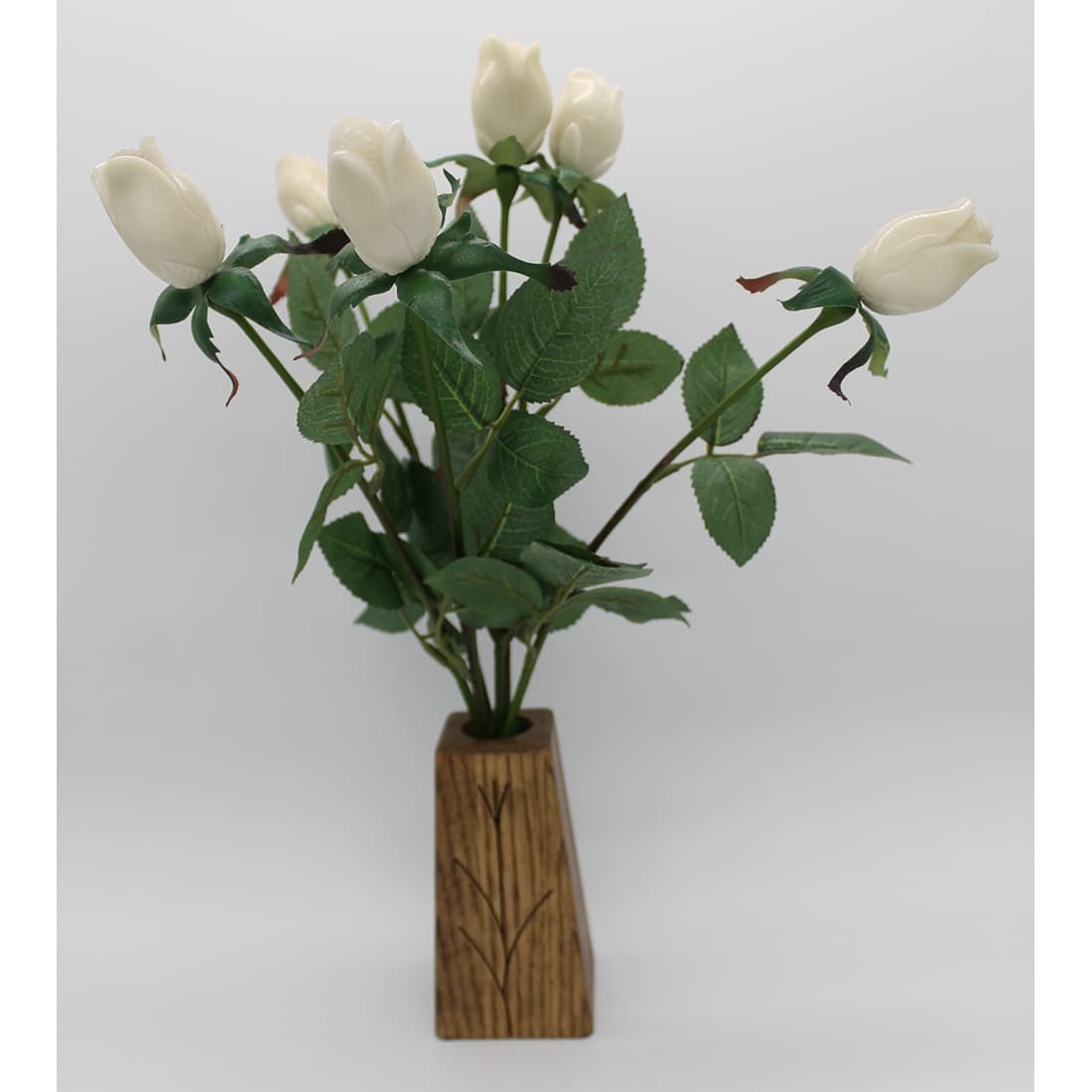 The traditional 14th anniversary gifts are presents made from ivory! Our most unusual creation, JustTaguaNutRoses are fake ivory roses, so no elephants killed! A tagua nut is a coconut-like fruit that is dried in the sun until hardened and then carved into beautiful roses just for us in Ecuador and then we put them on a beautiful 17” floral stem.