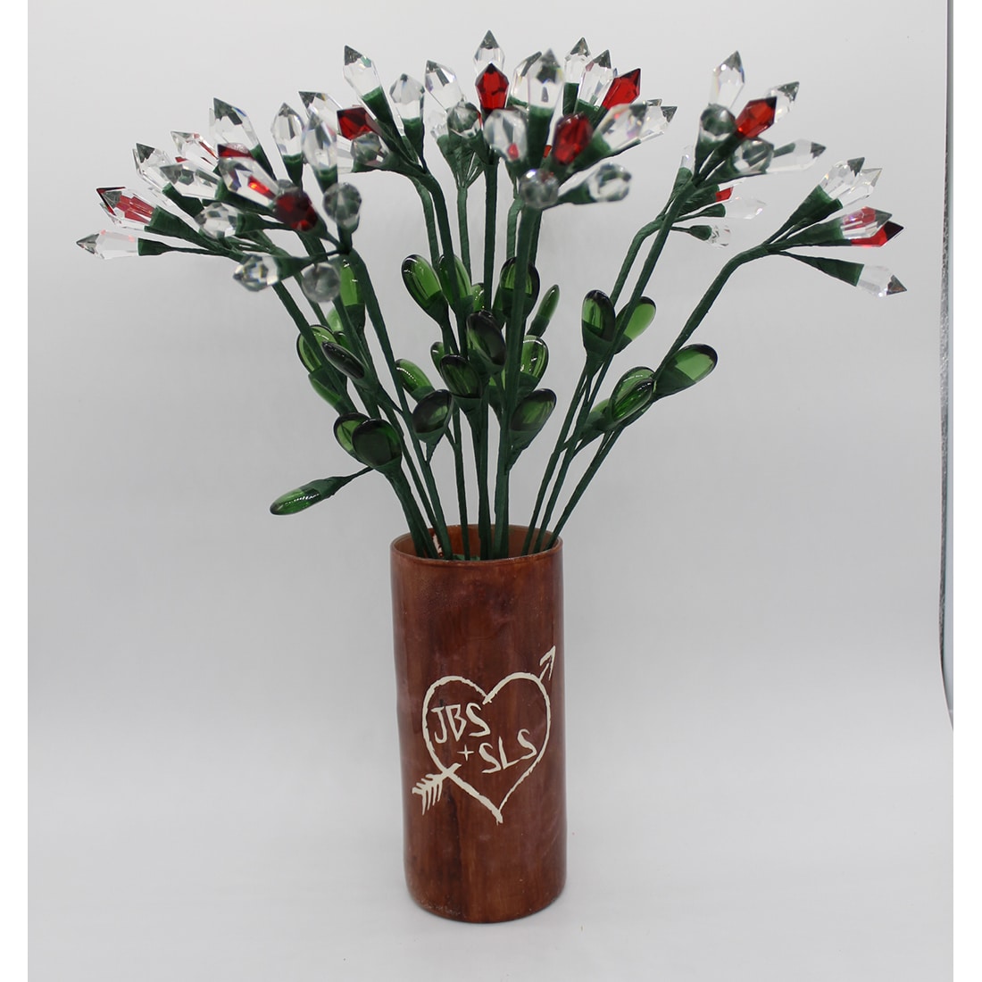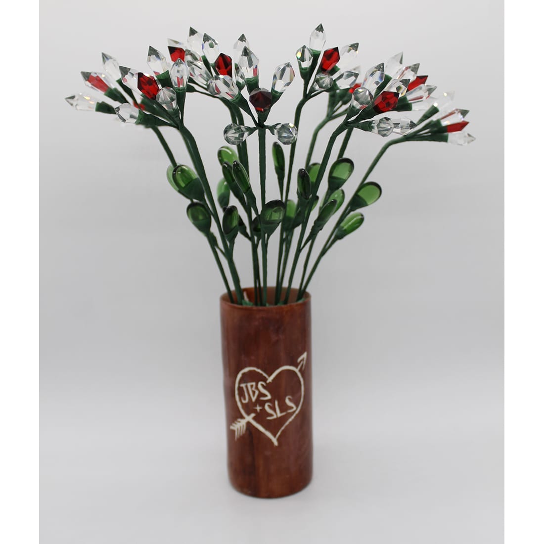 The traditional 15th anniversary gift is made from crystal! We make JustCrystalChandelierRoses from genuine leaded crystal chandelier drops. We make them by hand.
