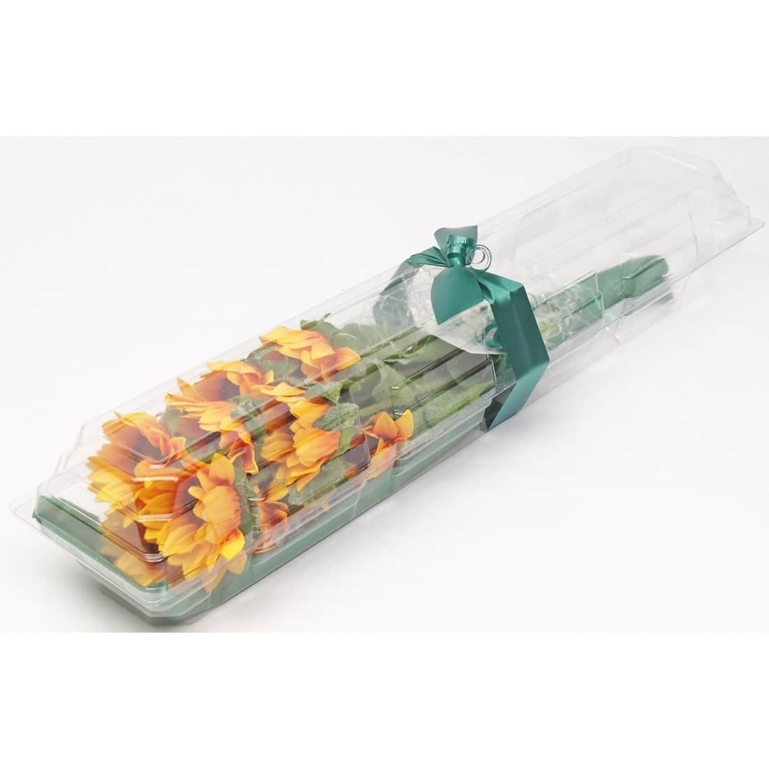 We package all our bouquets in clear, long-stem rose boxes with tissue, ribbons, & glitter for a great out-of-the-box gift presentation.