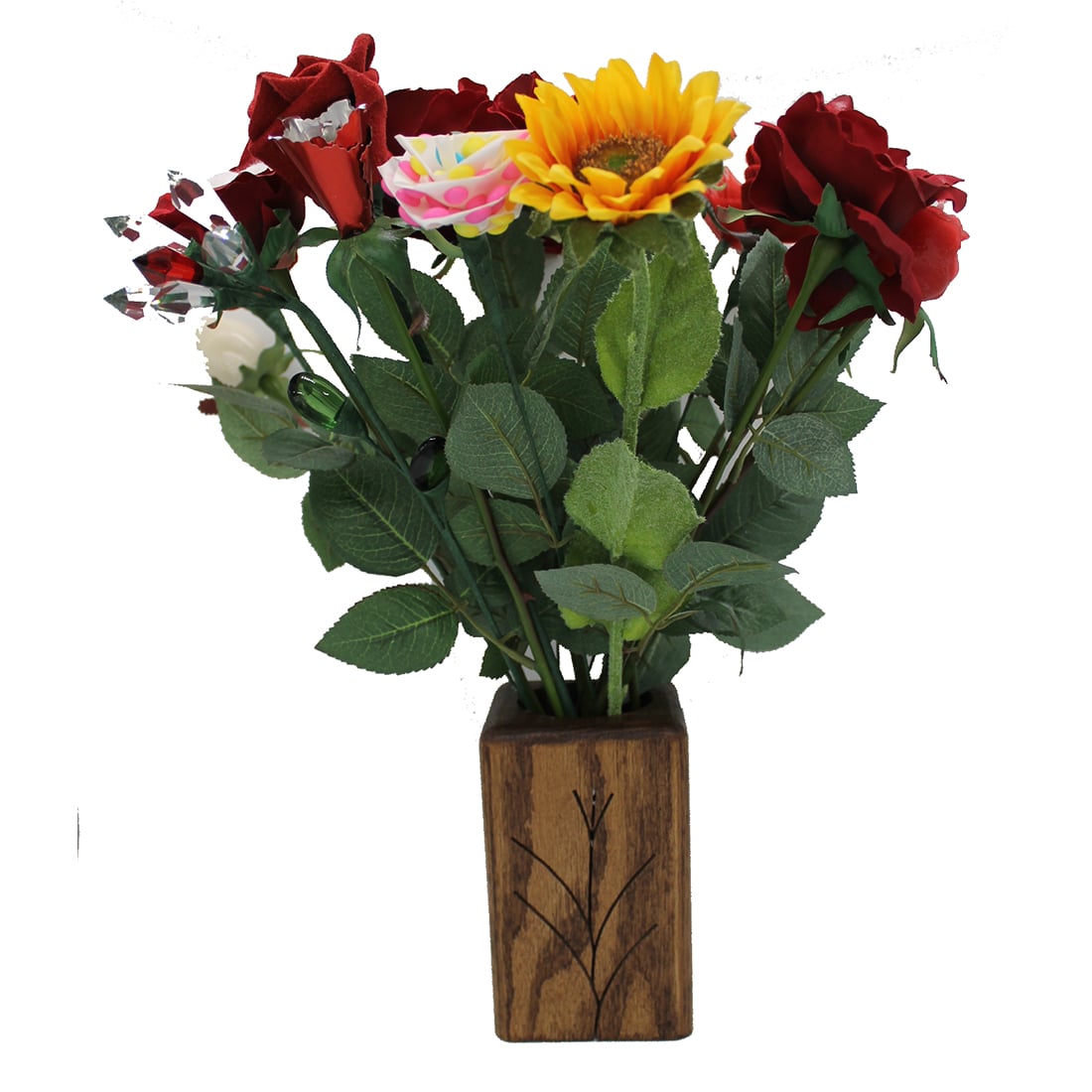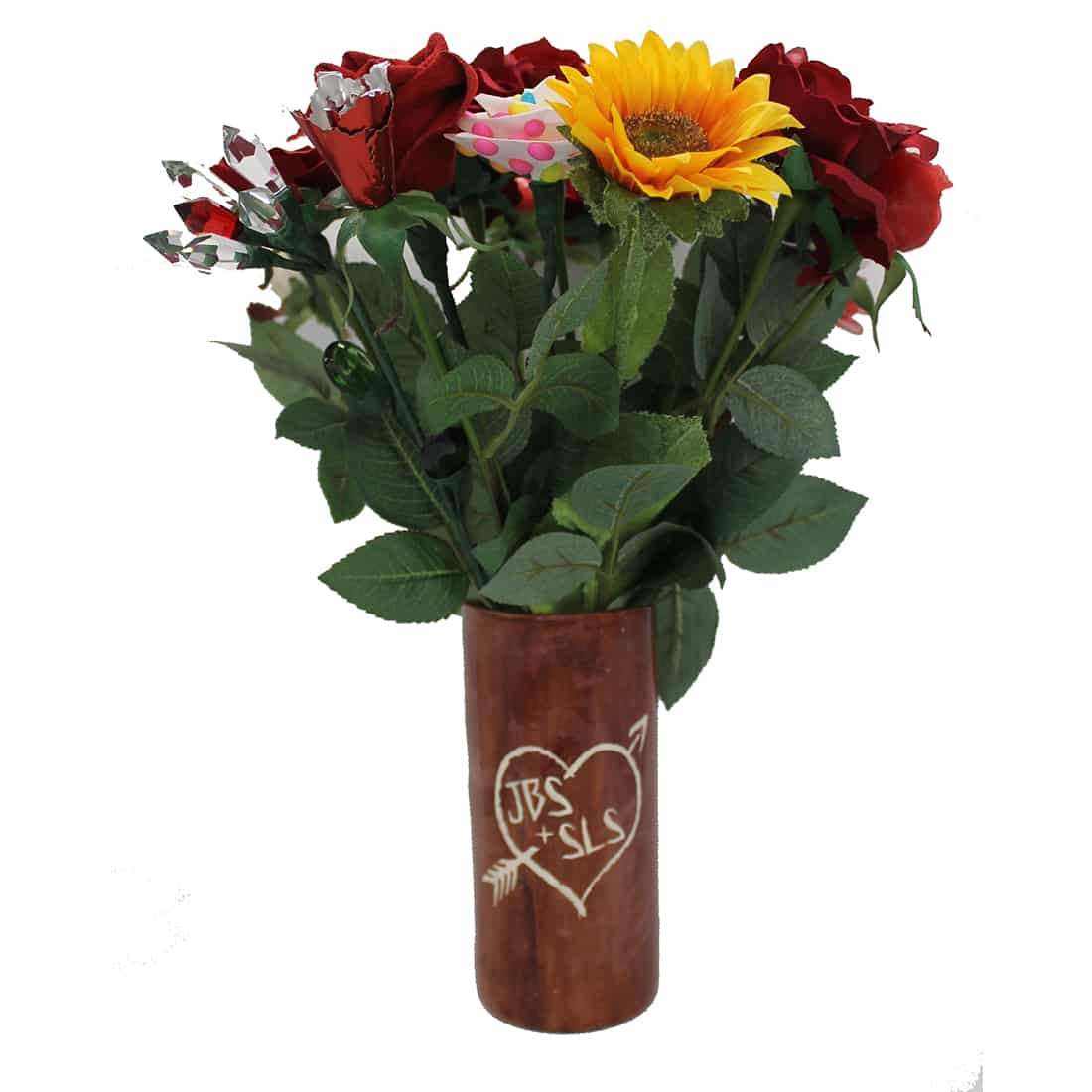 We have a variety of stem options including 18-stem (18 for 18th), 12-stem, 6-stem, 2-stem, and 1-stem. We also have a “1-stem for each year” option, which would include 1 rose representing each year of marriage: sunflower, wax, crystal, “ivory”, lace, silk, steel, aluminum, pottery, bronze, wool, candy, wood, fruit, leather, cotton, and paper. The idea here is that you would add a stem each year to a growing display.