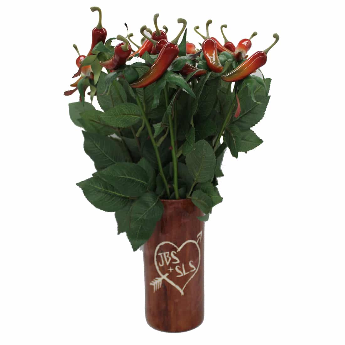 The traditional anniversary gift for the 19th Wedding Anniversary is made from chili peppers! Our JustChiliPepperRoses are made from artificial chili peppers attached to our highest quality 17” floral stems.