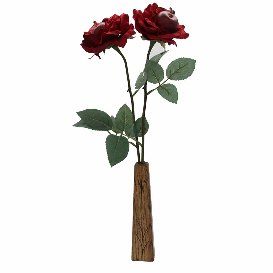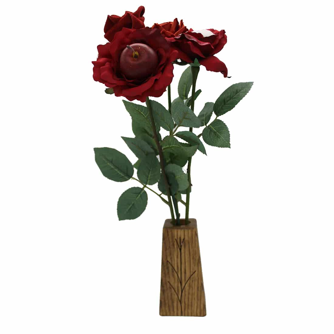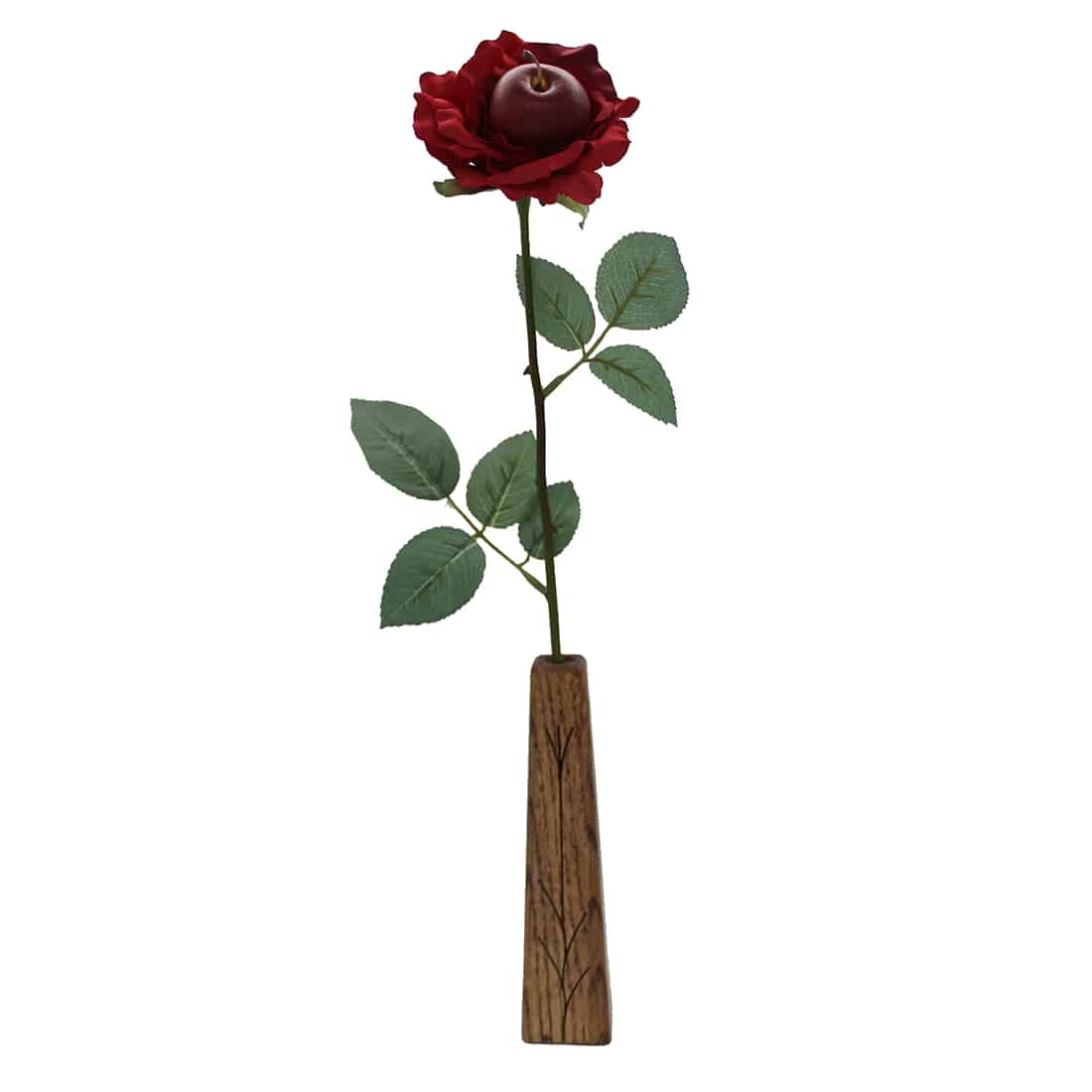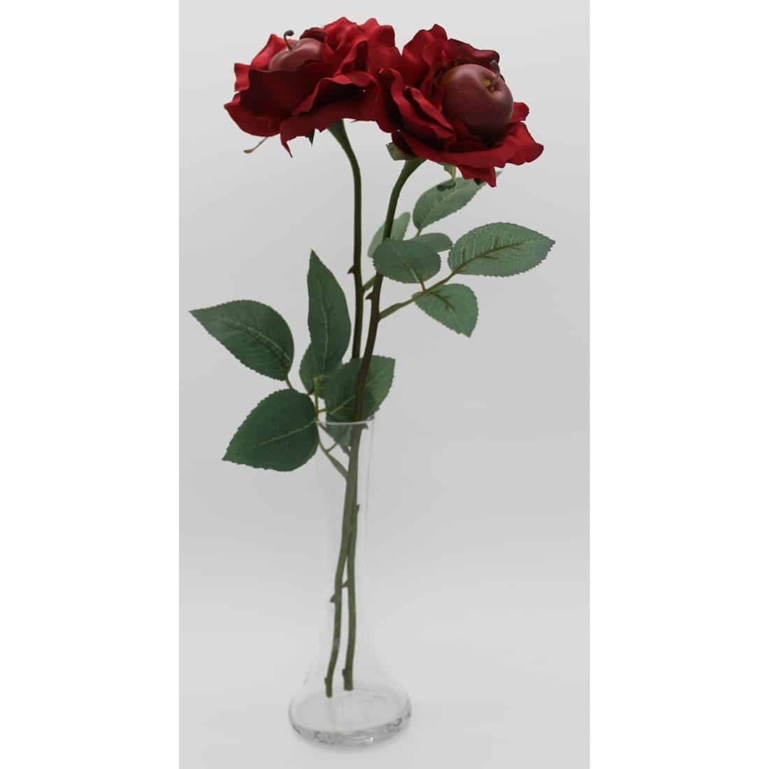 The traditional 4th anniversary gift is fruit. JustFruitRoses are created with our finest artificial roses and an artificial fruit glued in the center.
