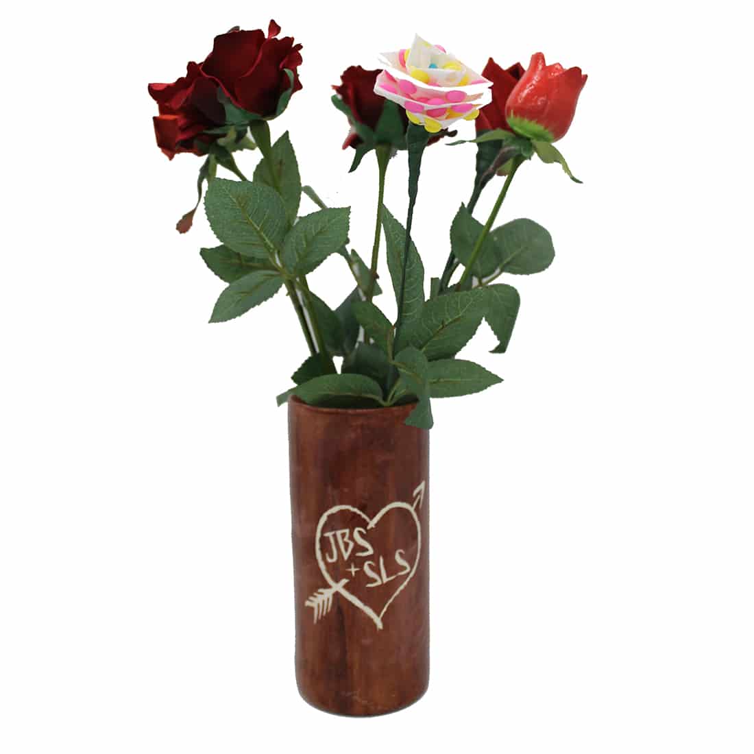 We have a variety of stem options including 12-stem, 6-stem (6 for 6th), 2-stem, and 1-stem. We also have a “1-stem for each year” option, which would include 1 rose representing each year of marriage: candy, wood, fruit, leather, cotton, and paper. The idea here is that you would add a stem each year to a growing display.