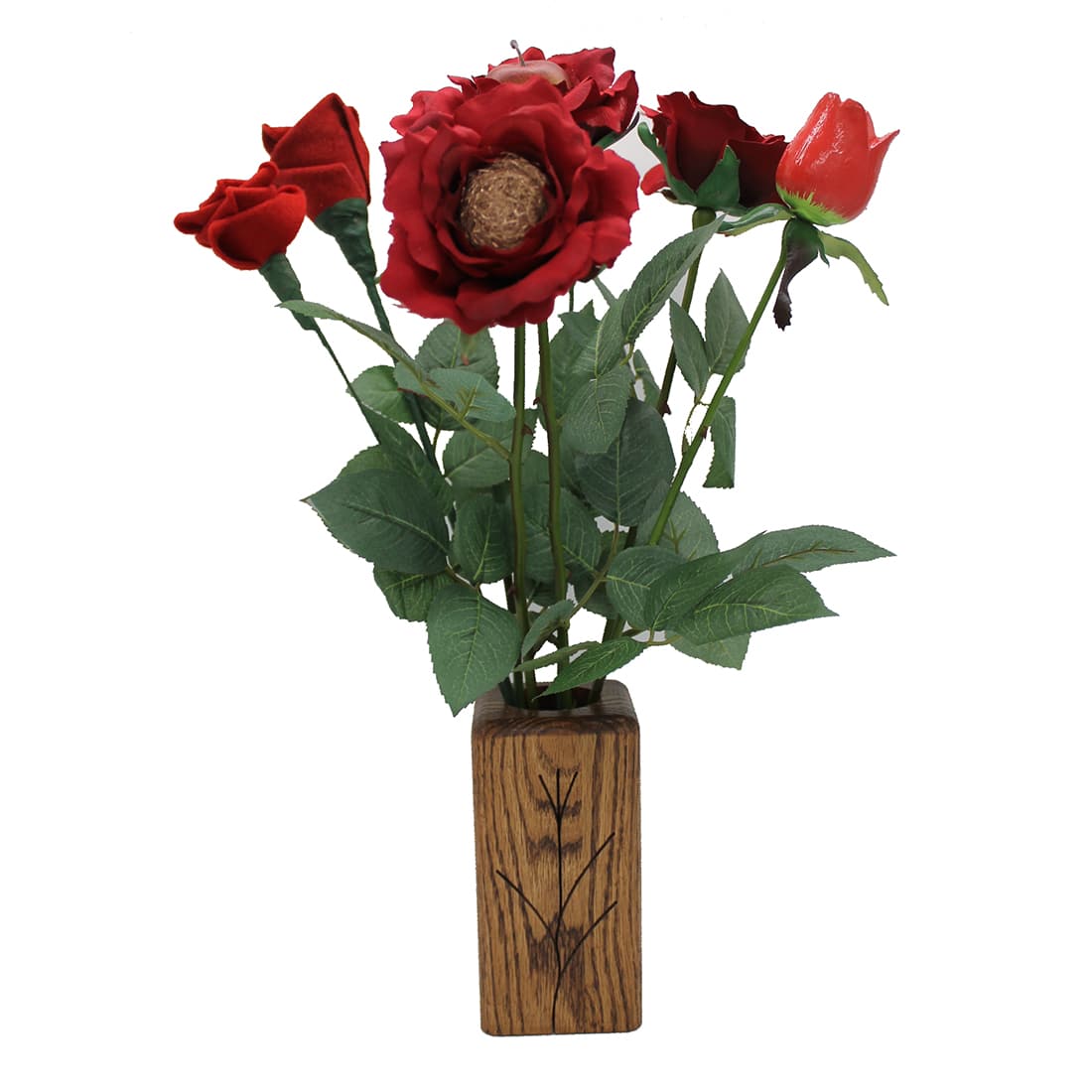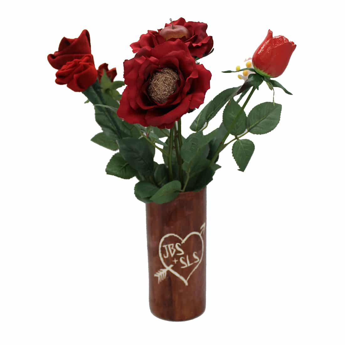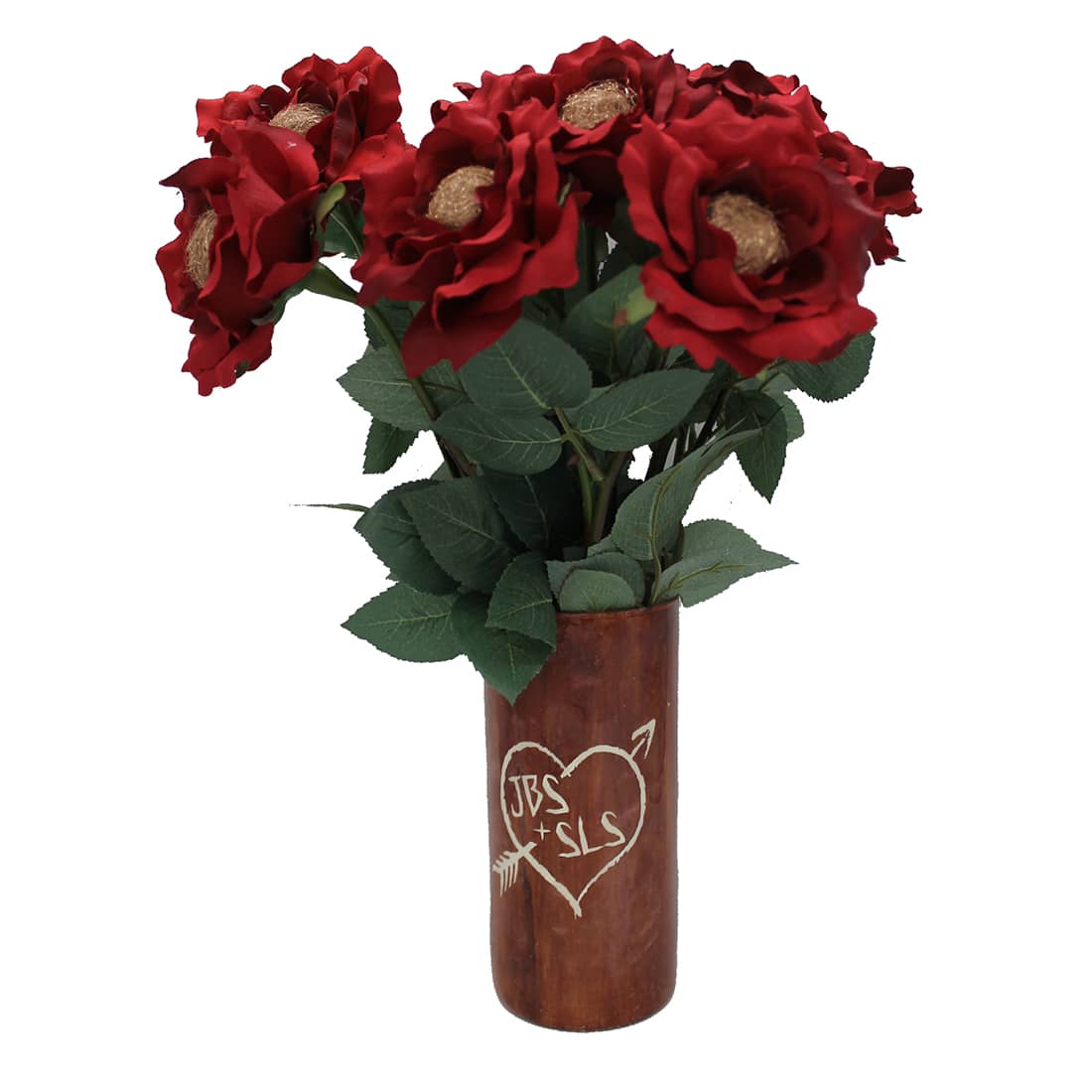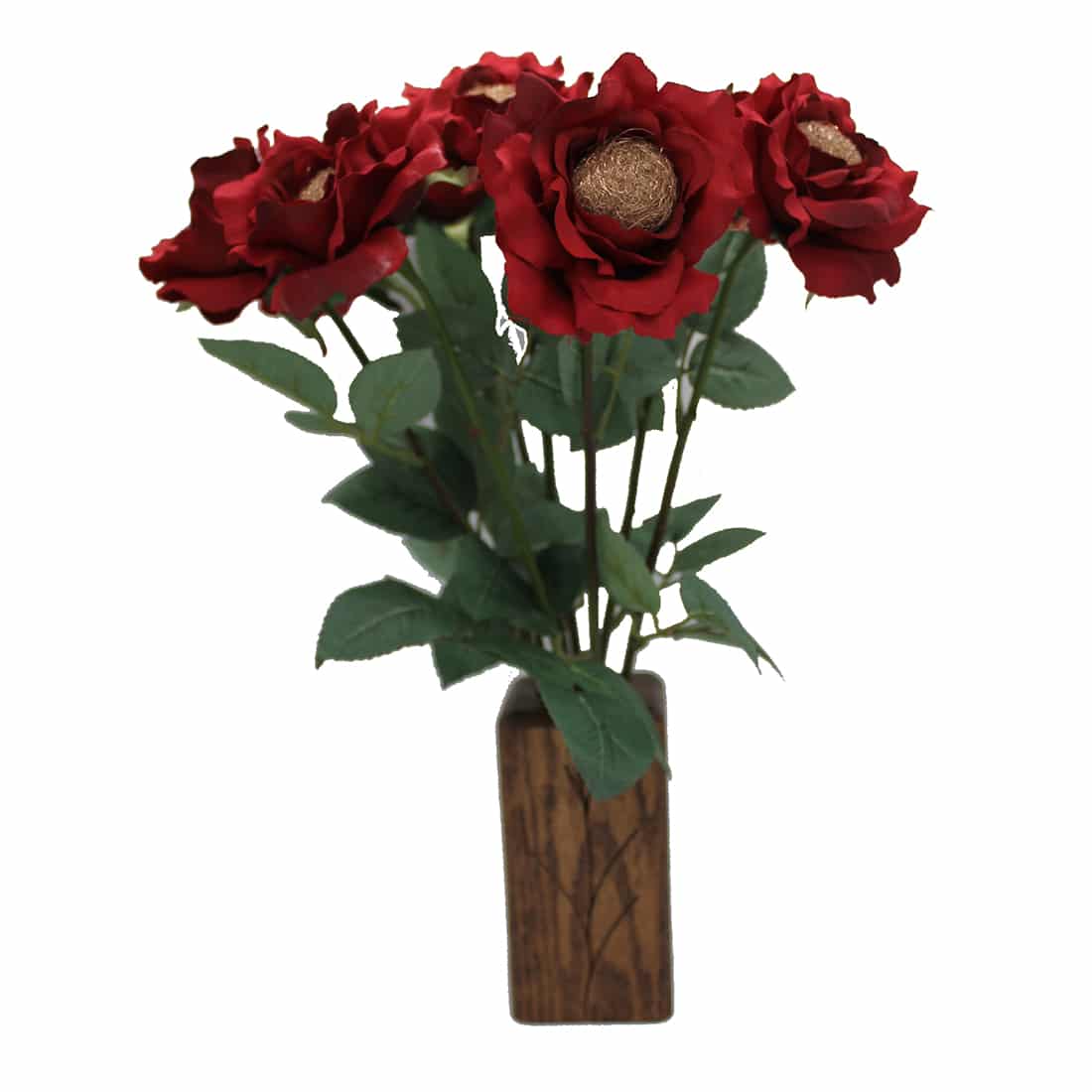 The traditional 8th anniversary gift is bronze. Our bronze roses are created using our finest artificial roses with a ball of bronze wool glued in the center – 17” stems.
